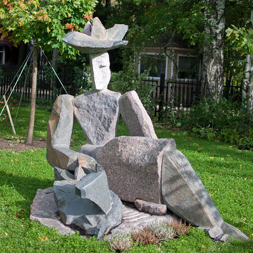 "Дама с собачкой", гранит. Частный сад скульптуры. Санкт-Петербург